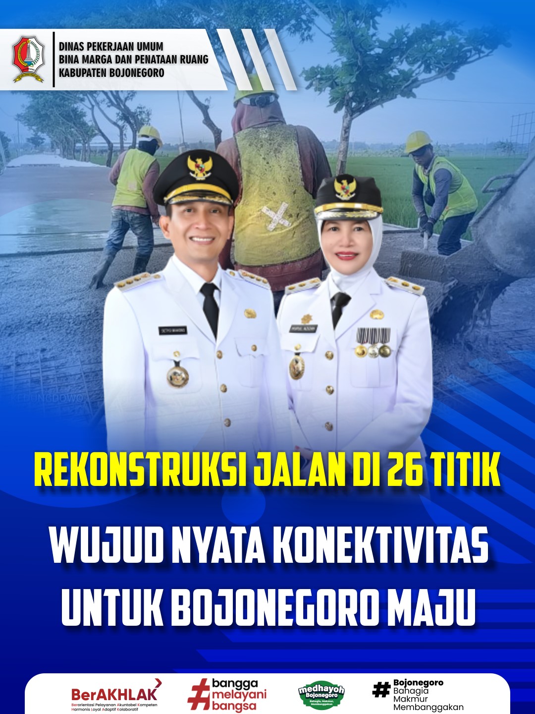 Dengan semangat gotong royong dan kerja nyata, Pemkab Bojonegoro berkomitmen menghadirkan jalan yang kuat, aman, dan berkelanjutan demi mewujudkan Bojonegoro yang bahagia, makmur, dan membanggakan.