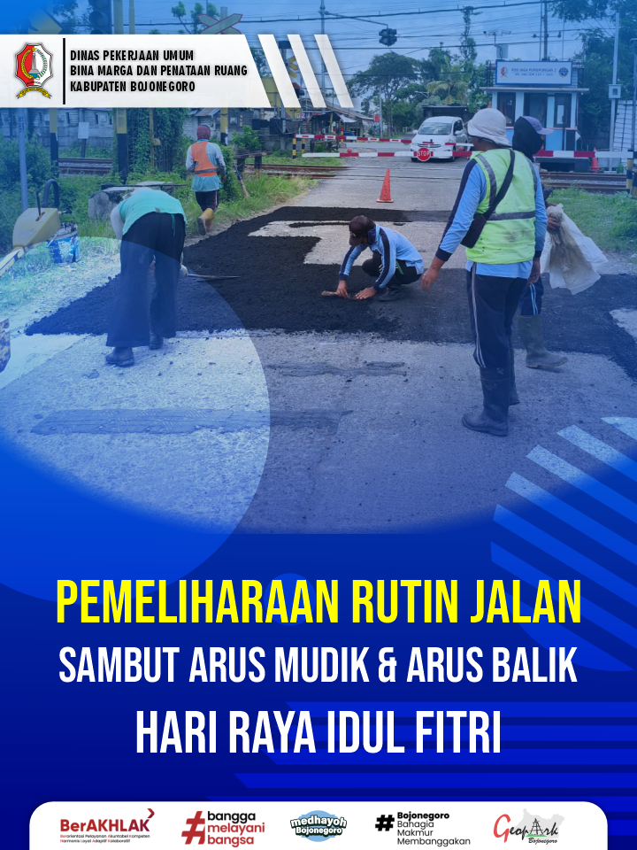 Menjelang momentum Idul Fitri, Pemerintah Kabupaten Bojonegoro melalui Dinas Pekerjaan Umum Bina Marga dan Penataan Ruang (DPU BMPR) melaksanakan pemeliharaan rutin jalan kabupaten di sejumlah ruas strategis. Kegiatan ini dilakukan sebagai langkah antisipatif untuk memastikan kondisi jalan tetap mantap, aman, dan nyaman dilalui oleh masyarakat.